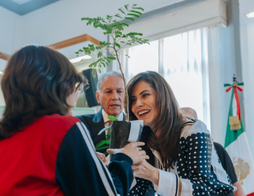 La presidenta municipal, Verónica Delgadillo, colocó a niños y jóvenes en el centro de la conversación ambiental. Les habló de los árboles como “héroes que no se mueven, pero todos los días hacen cosas por nosotros”: limpian el aire, reducen hasta cuatro grados la temperatura, dan sombra y ayudan a filtrar el agua.