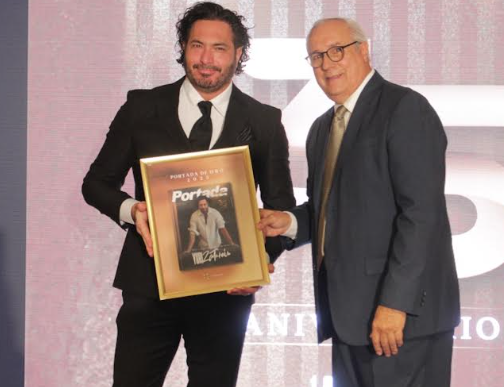 El artista plástico Yury Zataráin recibió la Portada de Oro como reconocimiento a su obra y el apoyo que brinda a las causas sociales al lado de Almendra Morquecho.