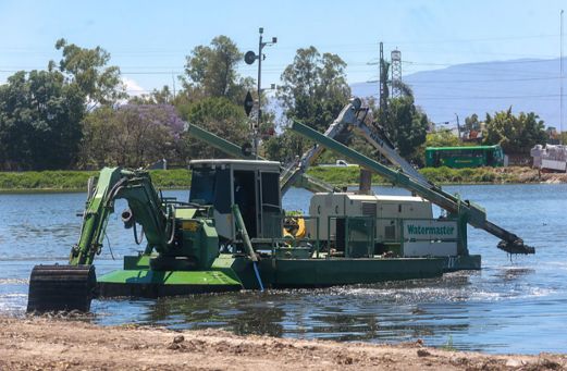 Limpian presa Las Pintas tras décadas de abandono: retiran 65 mil m³ de lirio y azolve