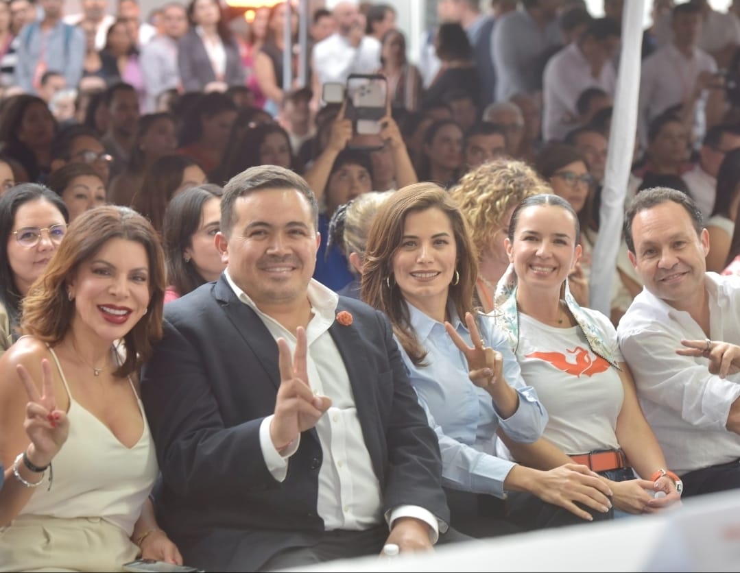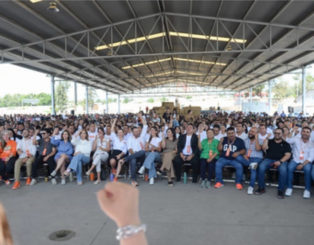 Entre integrantes del gabinete estatal, Priscila Franco se dejó ver en la asamblea distrital de Guadalajara, rodeada de entusiastas militantes naranjas, mostrando el imán que la distingue.