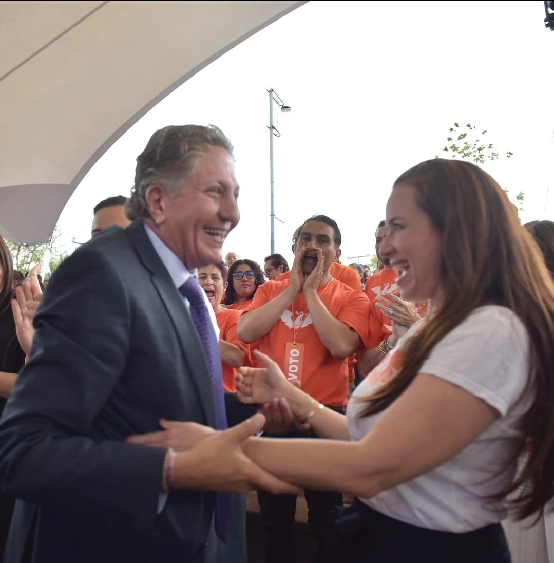 Mirza Flores y Gerardo Quirino en Tlajomulco, el municipio donde la lideresa absorbió la gran energía naranja que la llenó de vitalidad.