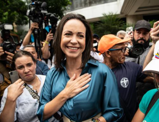 Machado, quien estuvo bajo condiciones de invisibilidad política durante parte del conflicto electoral de 2024, reapareció públicamente en el contexto de las protestas del 9 de enero de 2025, evento en el cual fue detenida brevemente antes de ser liberada. Esa experiencia de persecución y riesgo personal refuerza el relato del sacrificio y la resiliencia.
