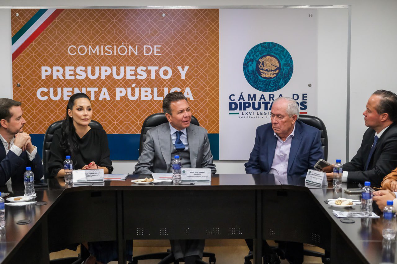 El gobernador Pablo Lemus con la presidenta de la Comisión de Presupuesto de la Cámara de Diputados, Mery Gómez Pozos.