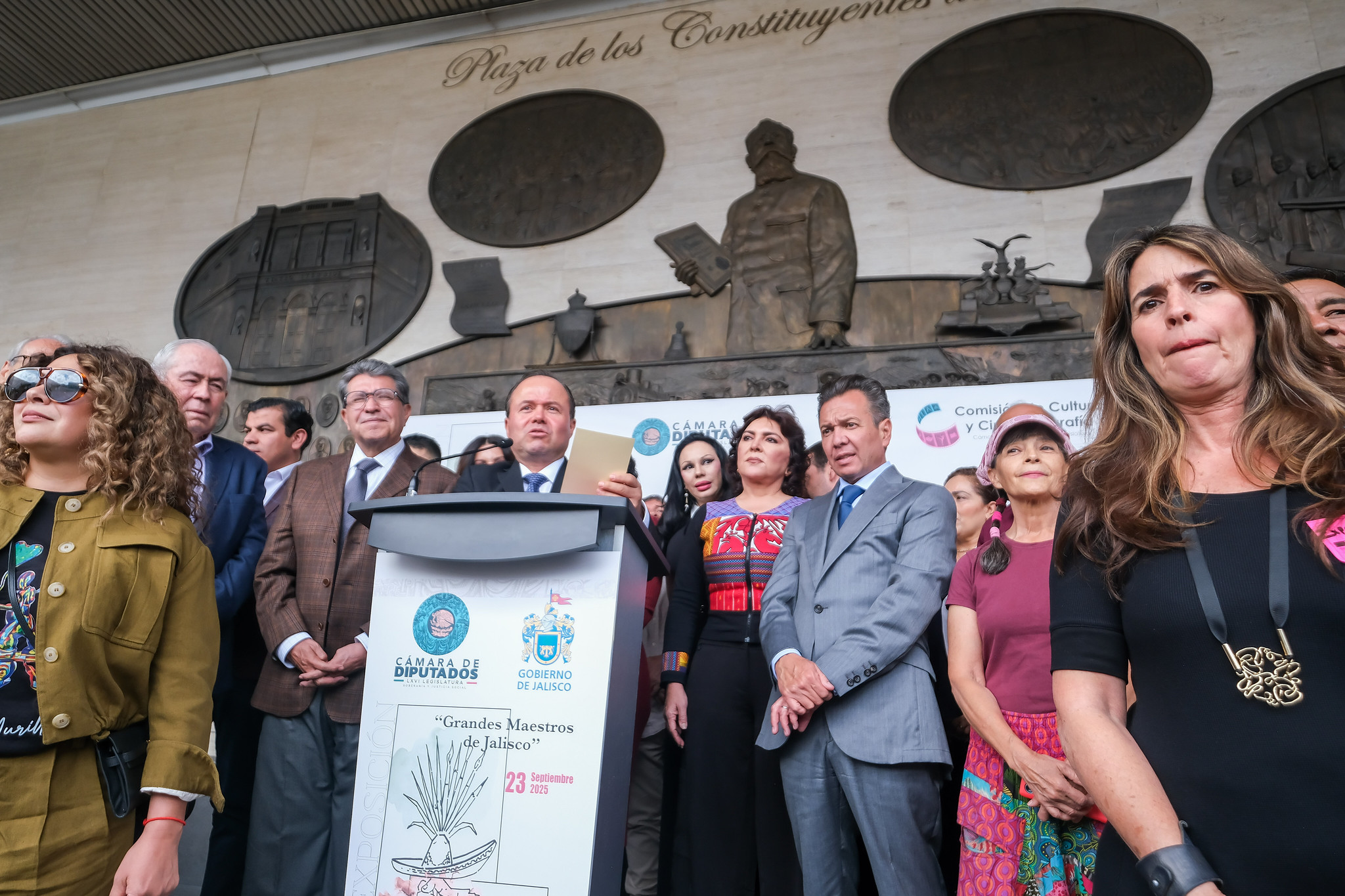 Con la presencia de legisladoras y legisladores federales de todas las fuerzas políticas, el gobernador de Jalisco, Pablo Lemus Navarro, encabezó la inauguración de la exposición Los Grandes Maestros de Jalisco en el Palacio Legislativo de San Lázaro al lado del líder parlamentario Ricardo Monreal.