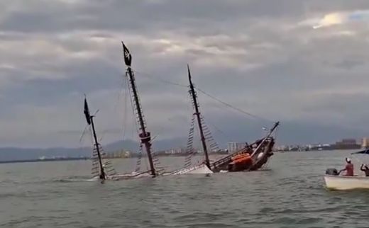 Luego de que fallaran sus sistemas de achique durante el paso del temporal marítimo, la embarcación recreativa con forma de barco pirata, se hundió la tarde del viernes en Puerto Vallarta, sin que se reportaran personas heridas.