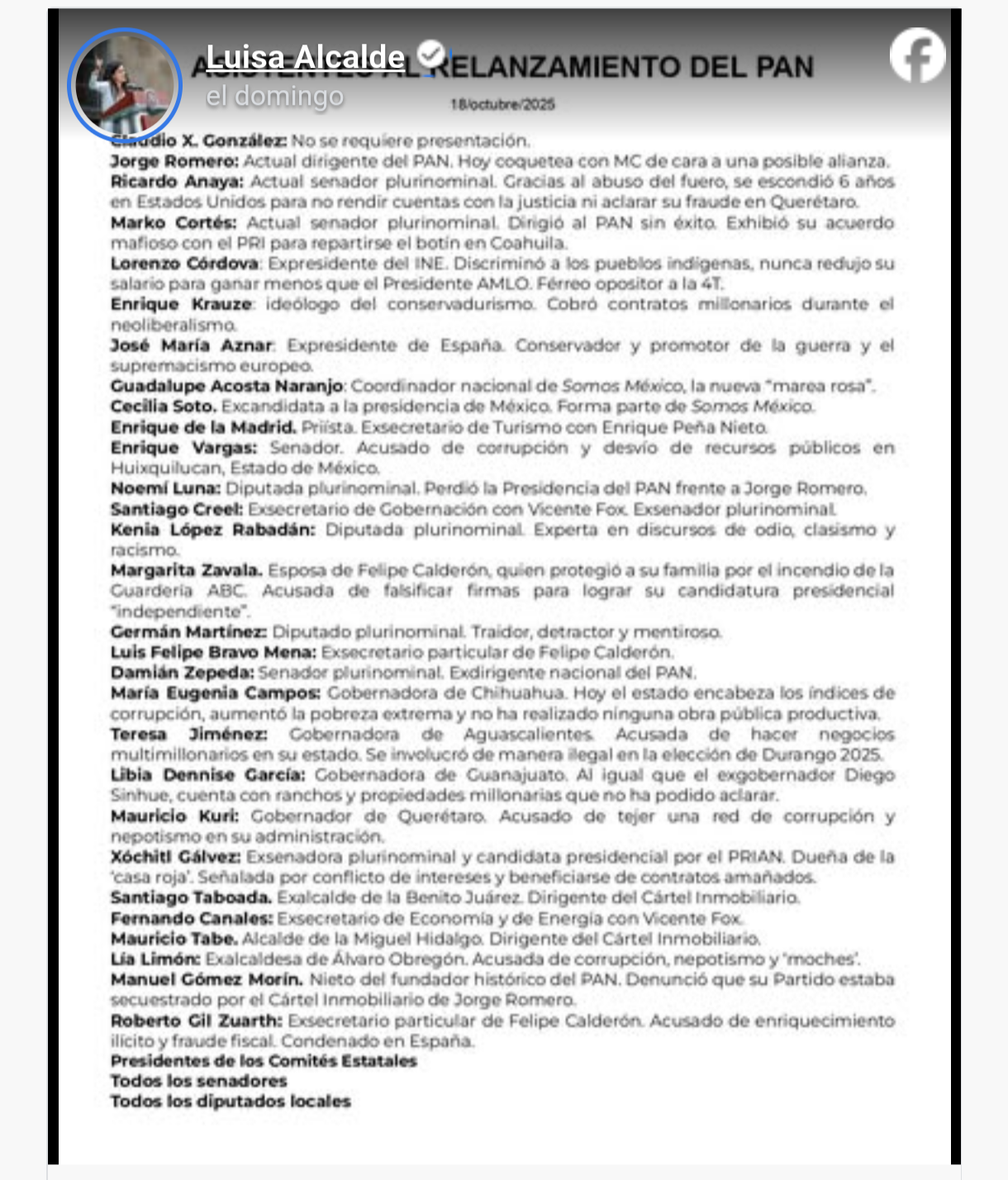 El viernes 17 de octubre, Luisa María Alcalde, líder nacional de Morena, negó que «Chema» Tapia forme parte del partido, a pesar de que fue candidato a la alcaldía de Querétaro en 2024 por una coalición encabezada por Morena.