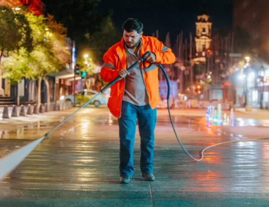 En un operativo nocturno, ocho dependencias de la Coordinación de Servicios Municipales realizaron la limpieza de 63 mil 700 metros cuadrados correspondientes a espacios como Plaza de Armas, Plaza Universidad, Plaza Guadalajara, la explanada del Mercado Corona y el Paseo Alcalde.